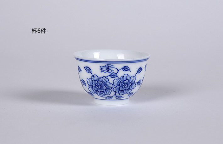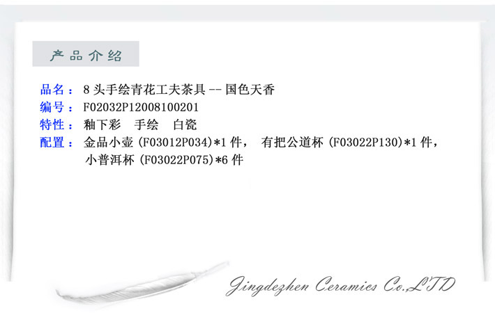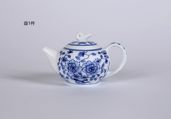8頭手繪青花工夫茶具國(guó)色天香