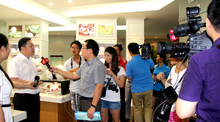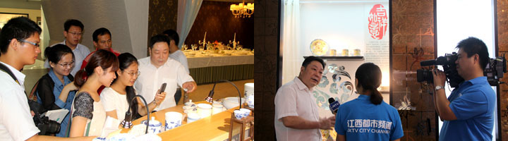 7月7日上午,由中央電視臺(tái)、光明日?qǐng)?bào)、江西日?qǐng)?bào)、江西電視臺(tái)、江西人民廣播電臺(tái)等20多家中央、省級(jí)媒體組成的記者采訪團(tuán)專程來景,集中采訪報(bào)道我市陶瓷文化及產(chǎn)業(yè)發(fā)展情況。公司黨委書記、董事長(zhǎng)王耀全程陪同采訪。