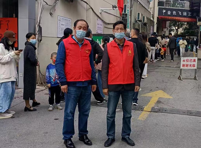 副書(shū)記陳華、黨員劉志華居住在高風(fēng)險(xiǎn)小區(qū)內(nèi),但是他們無(wú)懼風(fēng)險(xiǎn),主動(dòng)請(qǐng)纓,負(fù)責(zé)值守被封控的樓棟,確保疫情阻斷在網(wǎng)格內(nèi)。