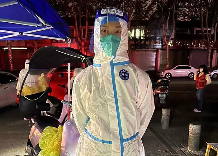 在這次疫情中,他積極踴躍參與志愿者服務,所在社區(qū)7各小區(qū),其中5個封禁,只剩下2個小區(qū)的黨員志愿者能正常開展志愿服務。他被社區(qū)派到負責社區(qū)高風險封控區(qū)上門核酸工作,每天深夜12點開始就與醫(yī)護人員一起上門服務做核酸。他主動負責核酸檢測的信息采集工作,認真做好每個人員的信息登記,確保不出差錯,至始至終堅守在檢測一線,用擔當和責任為居民筑牢疫情防控安全屏障,以實際行動挑起時代賦予的重任。