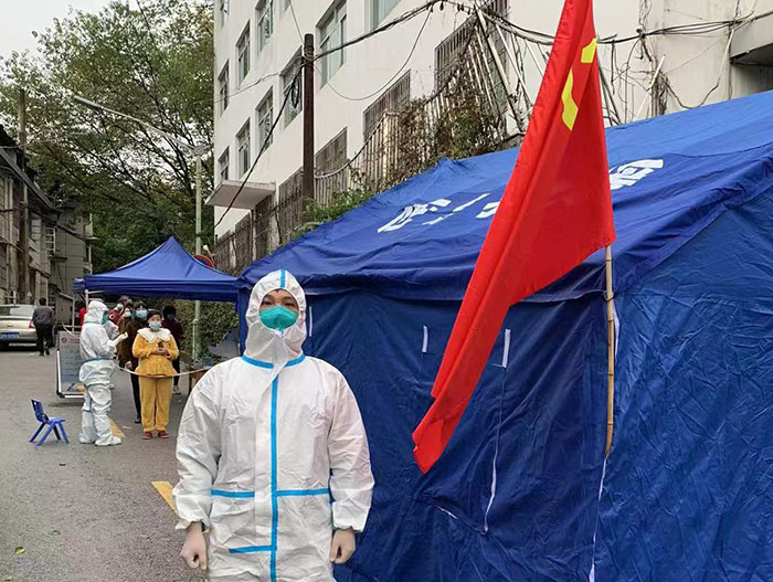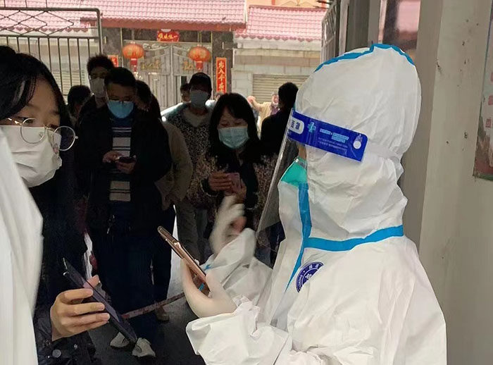 社區(qū)“雙報到”,抗疫顯擔當。疫情來襲,黨員穿上“大白”防護服、做好秩序維護、發(fā)放健康檢測表、信息錄入、政策宣傳、掃碼查驗、上門進行采集核酸……。在各管控小區(qū),黨員志愿者們的身影,一直在為小區(qū)居民們辛苦地付出著。“我們都是小區(qū)業(yè)主,又都黨員志愿者,在這種特殊時刻更要挺身而出,體現(xiàn)作為黨員的本分,在危難時刻顯擔當。根據(jù)防疫工作安排,每天的工作時長都不固定,但我們每天都從半夜工作到凌晨。我們社區(qū)大家的配合度都很高,整個小區(qū)情況比較平穩(wěn),我們覺得能夠在疫情防控工作貢獻一些力量感到很開心。”危永清說道。