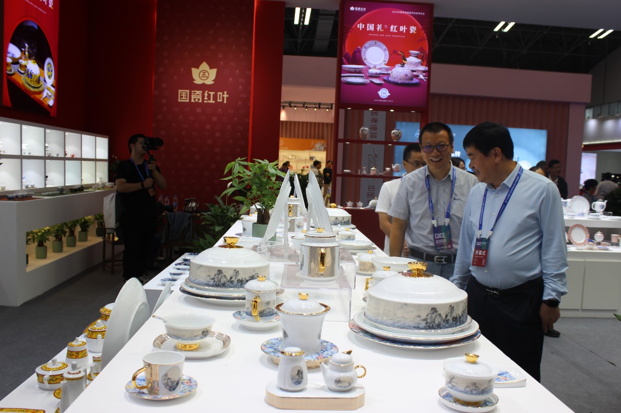 展會期間,展廳內(nèi)人流如織、氣氛熱烈非凡,多位貴賓蒞臨紅葉展廳參觀指導(dǎo)。黨委書記、董事長鄧景揚詳細介紹了此次參展的多款新品以及國瓷紅葉的出海故事和創(chuàng)新成果。各位貴賓對此次國瓷紅葉的多款新品給予了高度評價和充分肯定并鼓勵國瓷紅葉多利用自身優(yōu)勢,積極研發(fā)新產(chǎn)品,開拓新巿場,為傳承中國傳統(tǒng)文化和創(chuàng)新發(fā)展做出更大貢獻。